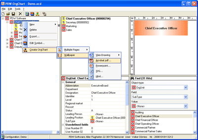 In the user-interface the imported data is shown. From this treeview the creation of organizational charts can be started.