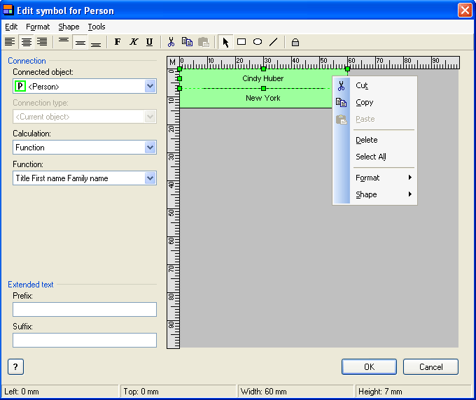 In the Shape-Editor you define the symbol for every object type e.g. which information you want to show.