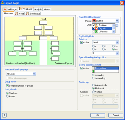 In the Layout-Logic you define the desired detailing of the organizational chart, e.g. whether only OrgUnits or also the associated persons should be displayed.